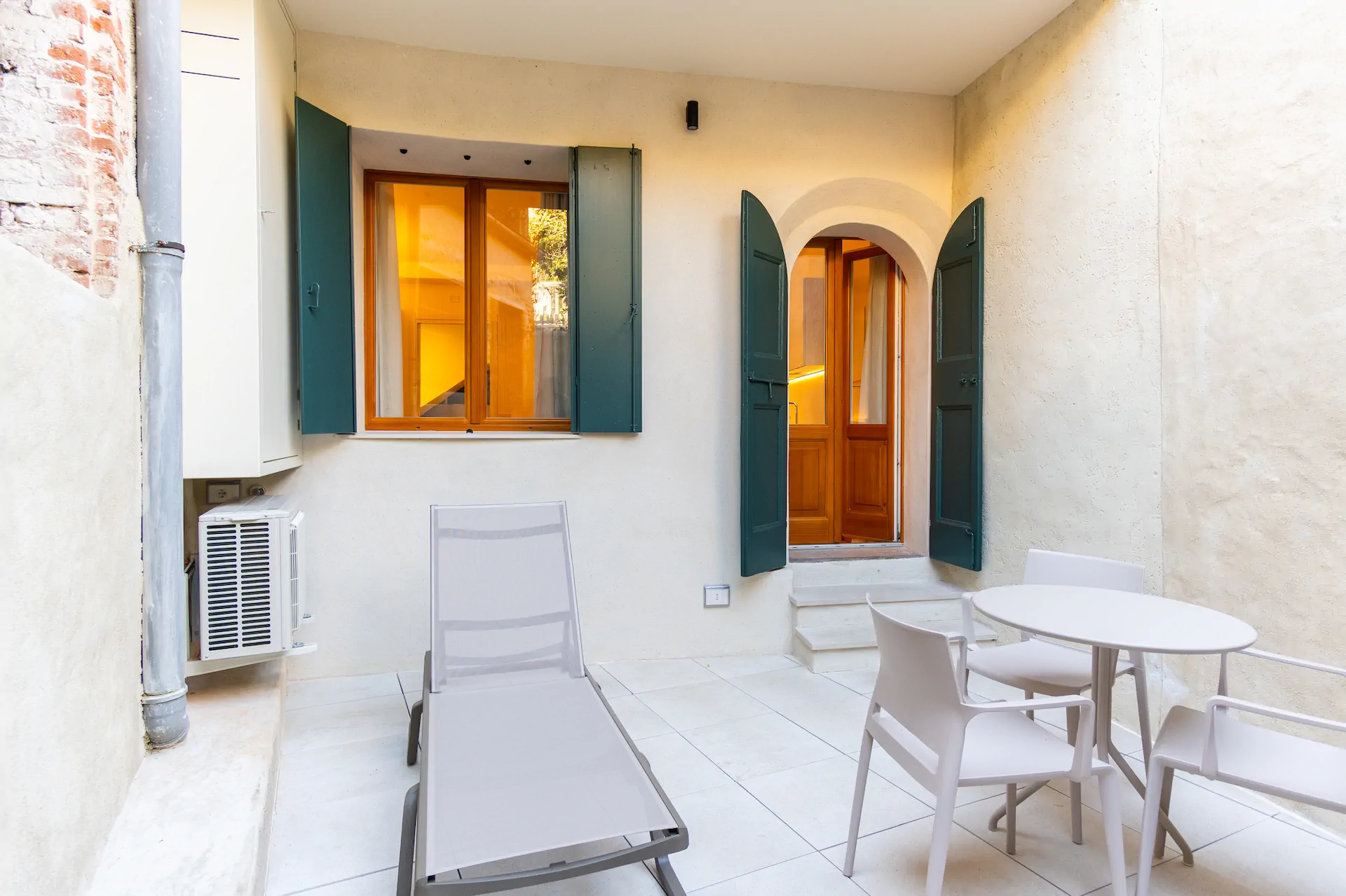 Ogni appartamento prende il nome da una figura legata alla storia di Asolo. Spazi diversi, stessa filosofia: design essenziale, materiali di qualità e comfort moderno.
